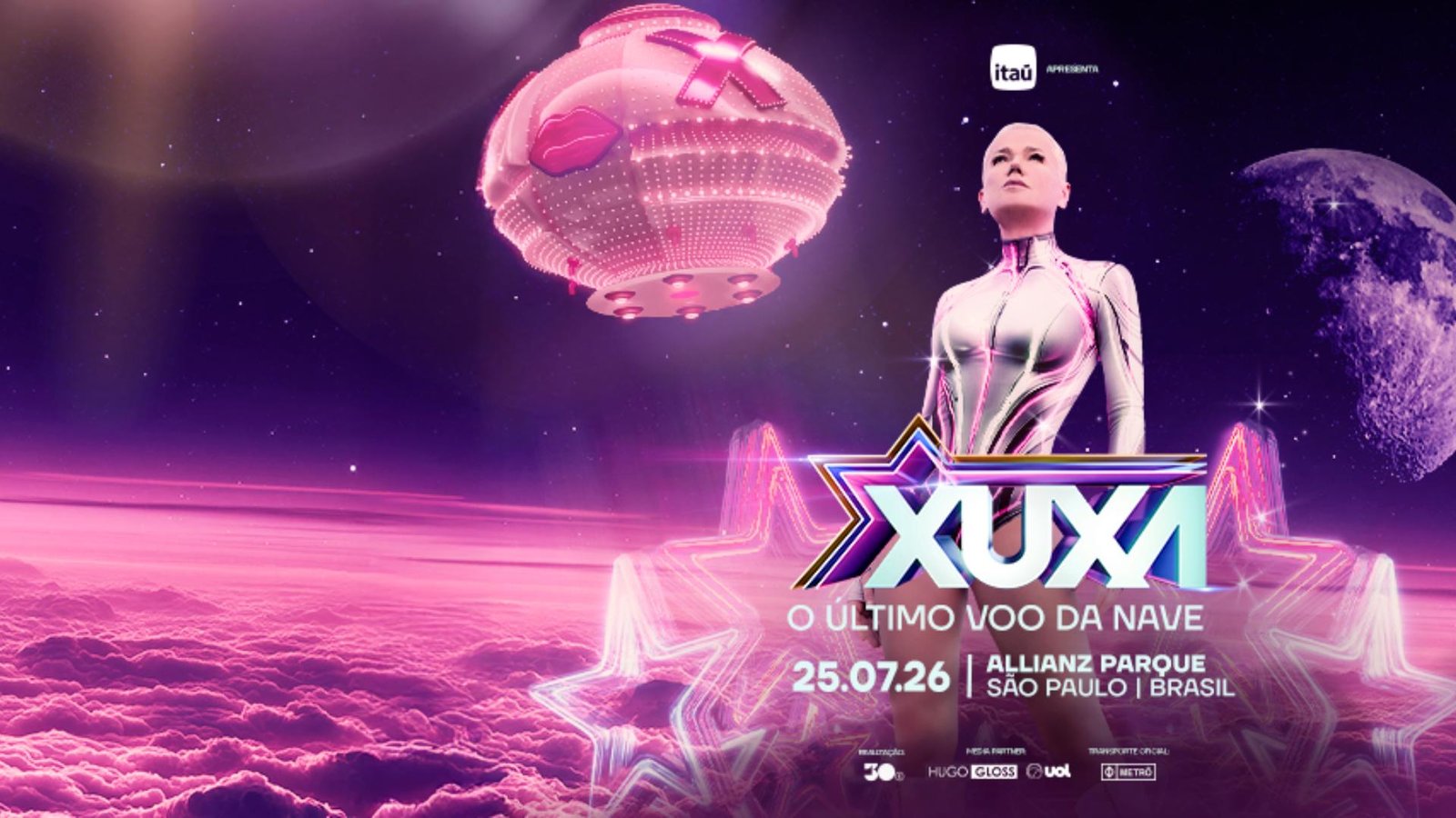 O Allianz Parque receberá no dia 25 de julho de 2026 o espetáculo “O Último Voo da Nave”, marcado como a despedida de Xuxa dos palcos. A apresentação, realizada pela 30e, promete uma grande produção com cenários, projeções e personagens clássicos da carreira da artista.