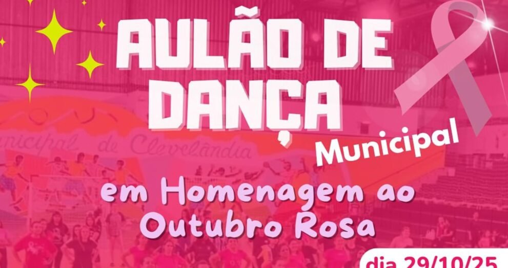 Clevelândia realiza Aulão de Dança gratuito no dia 29 em apoio ao Outubro Rosa, incentivando a conscientização sobre o câncer de mama.